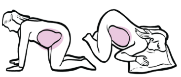 Celem jest: otwieranie miednicy, łagodzenie bólu, współpraca z grawitacją.